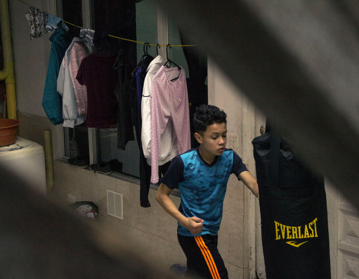 Lo que observé durante la investigación es que los niños se han adaptado a este estilo de vida, emocionalmente uno puede comprender que es complejo estar en la casa todo el tiempo y durante la sesión de fotos vi en muchas ocasiones una expresión de tedio porque su mamá constantemente les está exigiendo sus deberes caseros y escolares. Sin embargo, los niños Torres González se están adaptando a la rutina de la pandemia con el rigor que implica estar en la casa la mayor parte del tiempo, en mi investigación me encontré con una niñez que ya estaba preparada para el cambio por el acceso y la interacción desde temprana edad con entornos virtuales (redes sociales, videojuegos, etc.). De aquí que la rutina de Leander resulte muy interesante, porque a pesar de sufrir por querer pasar mucho más tiempo en su celular, intenta a través del movimiento configurar su cuerpo y su imaginación, durante mi visita, la iniciativa de entrenar del hermano mayor motivó a sus hermanos, por un momento, a jugar a los pokemones, lanzándose pelotas de plástico y corriendo en el patio de la pensión donde viven.
